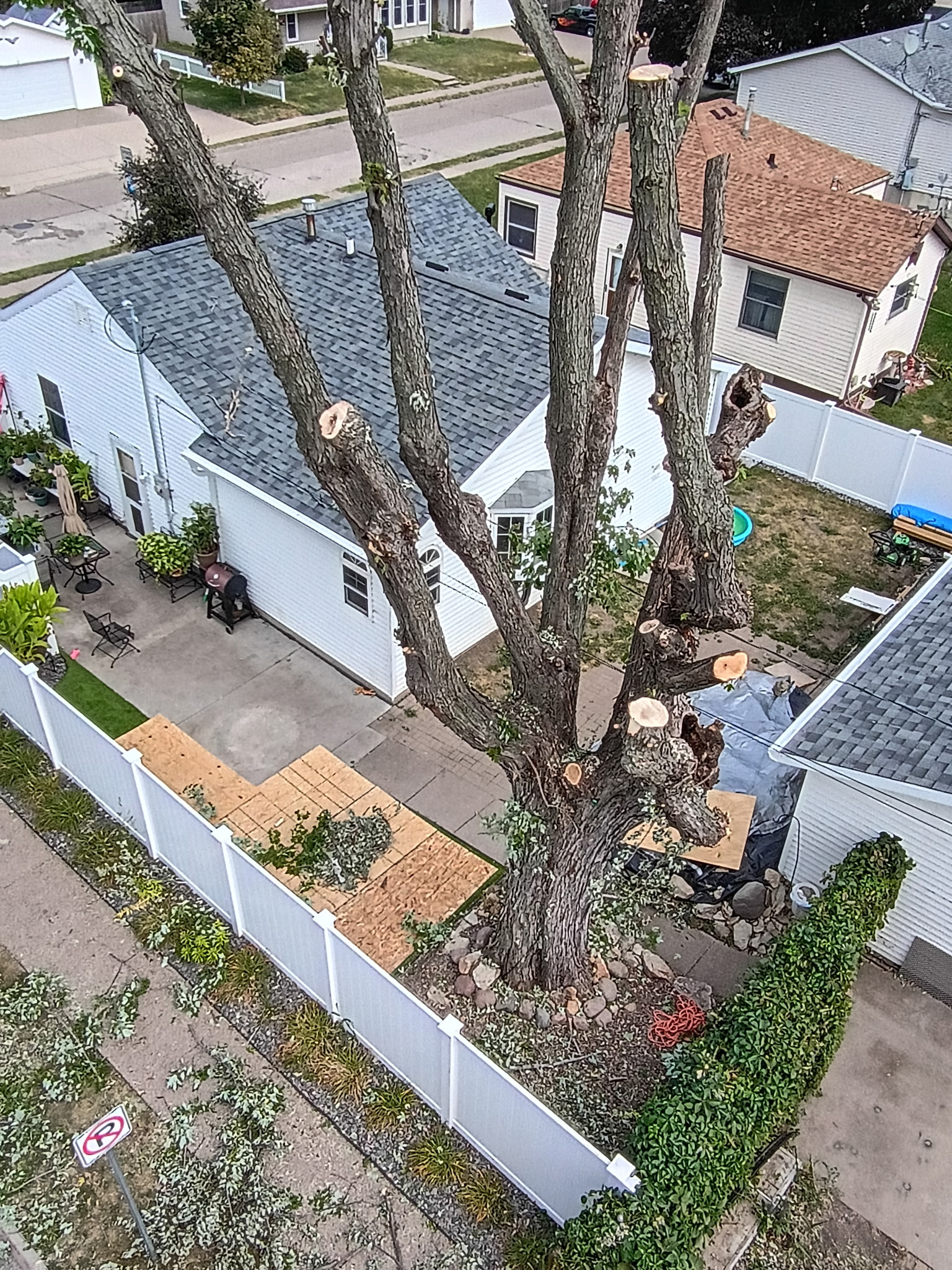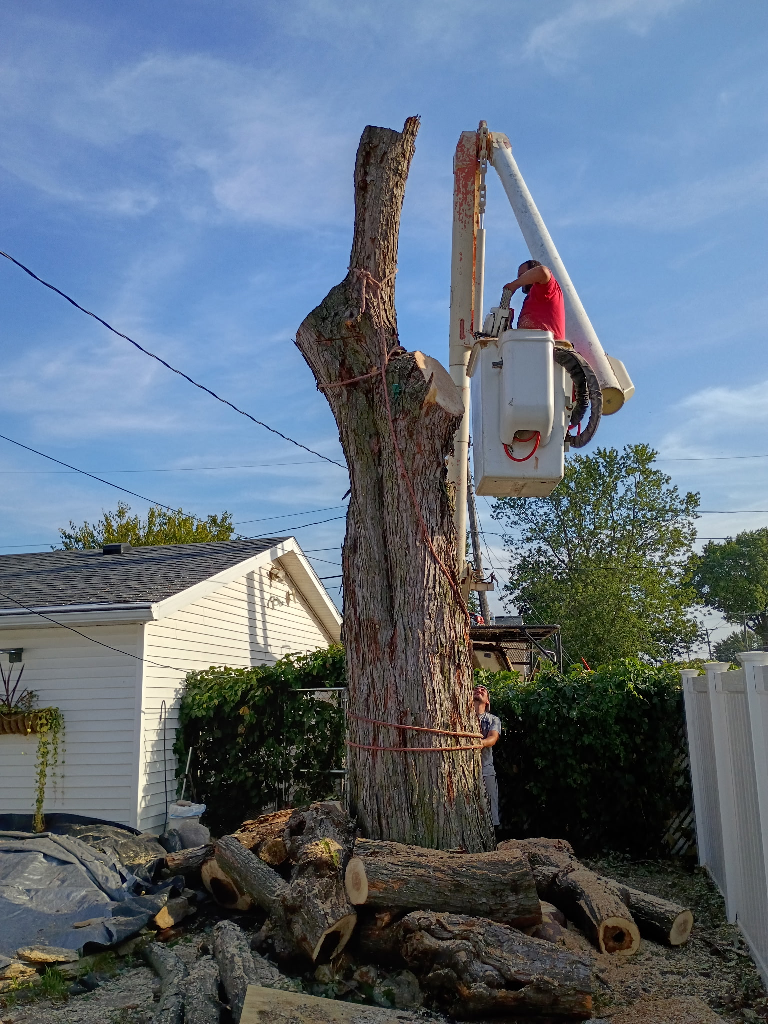 Yes. Our bucket truck and rigging equipment let us remove trees in tight spaces without damaging your house, fence, or landscaping. We lower sections piece by piece instead of dropping the whole tree.